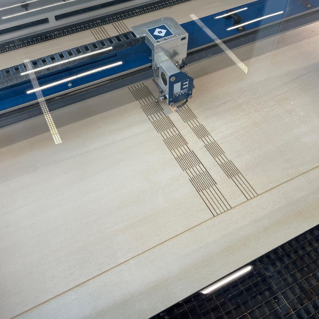 Hier kannst Du sehen, wie ein Nutzer bei uns den Lasercutter einsetzt, um ein Muster in Holz zu schneiden, sodass das Teil anschließend biegsam wird. Durch solche Techniken lassen sich viele Ideen umsetzen, beispielsweise wenn es um prototypenartige Gehäuse geht. Du musst dazu nicht mal besonders tiefe Konktruktions-Skills haben, sondern kannst beispielsweise Tools wie Makercase nutzen. Falls Du doch gerne selbst konstruieren möchtest und dazu fragen hast, kontaktiert uns gerne oder sprech uns an!