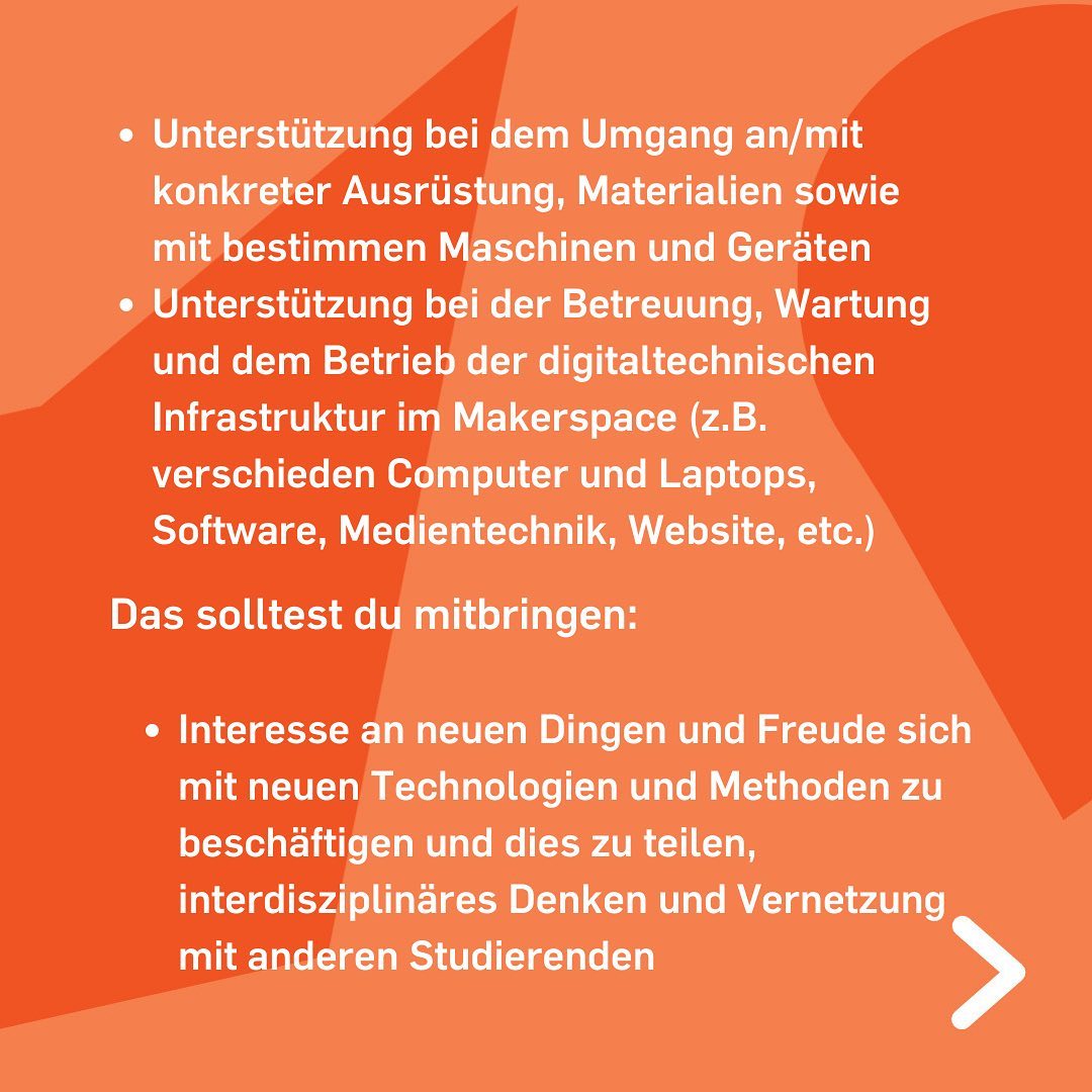 • Unterstützung von Nutzer*innen des Makerspace und insbesondere zu deren allgemeiner Unterstützung bei der Umsetzung aller Arten von Projekten im Makerspace.