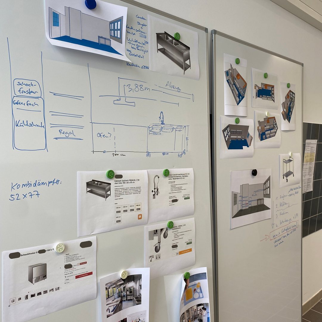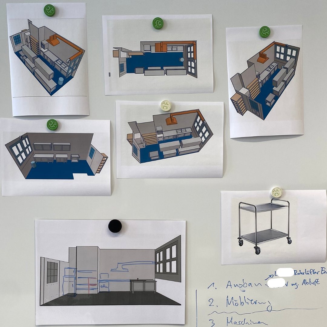 Die Planung unserers Küchenlabors geht in die nächste Runde! Nachdem alles vermessen wurde und wir ein Grundkonzept zur Gestaltung des Küchenlabors entworfen haben, überlegen wir nun welche Maschinen und Geräte wichtig sind. Hast Du Anregungen und Wünsche, was in unserem Küchenlabor zur Verfügung stehen sollte? Melde Dich bei uns hier.