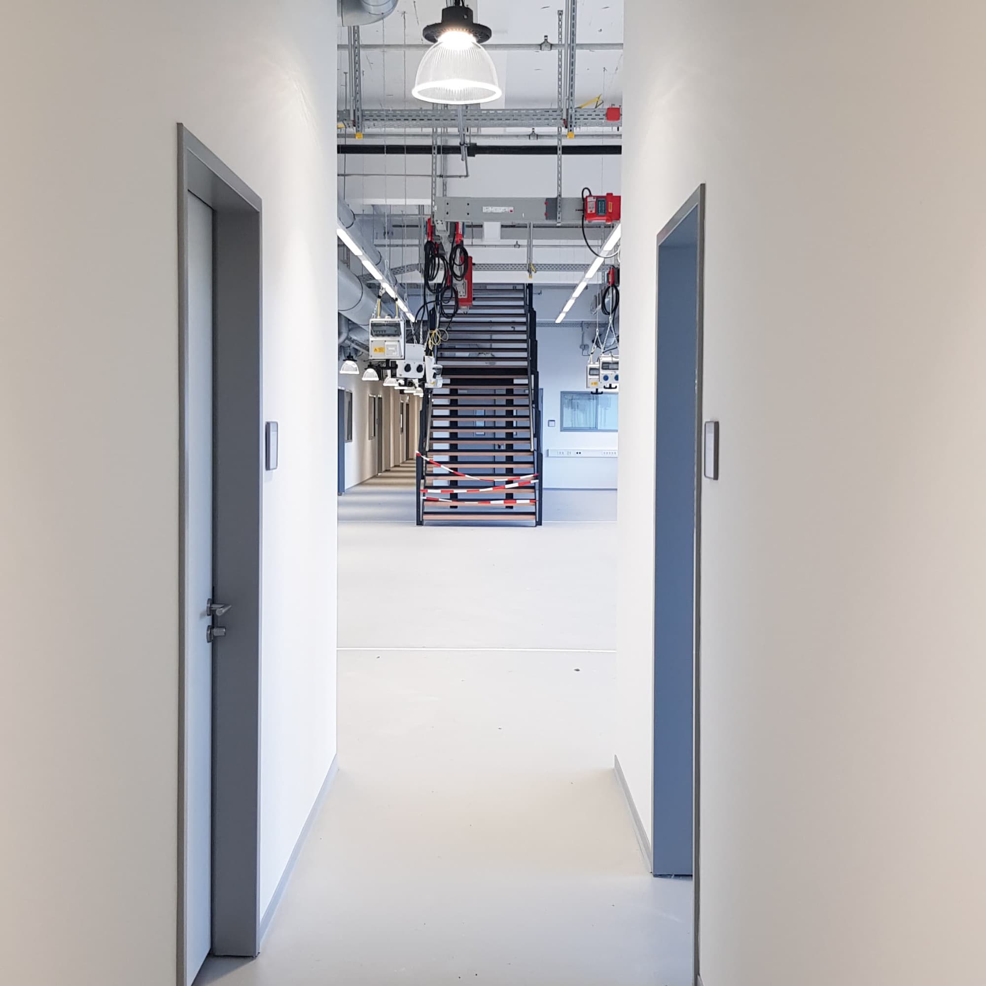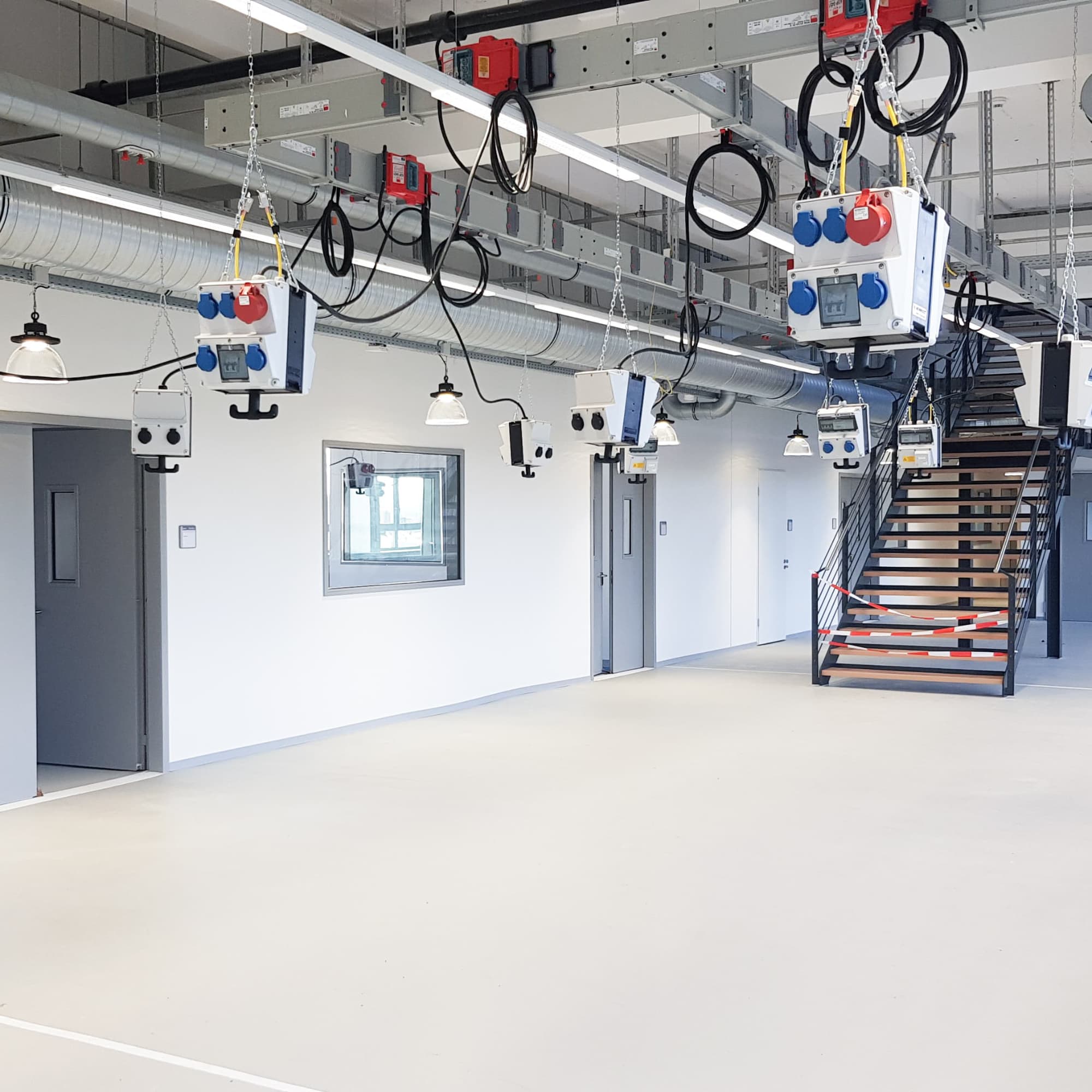 Erster Blick ins Untergeschoss Montagezone, Seminarräume, Lager für Projektarbeiten und so weiter bekommen ihren Platz in unserem lichtdurchfluteten Untergeschoss mit Außenterrasse.