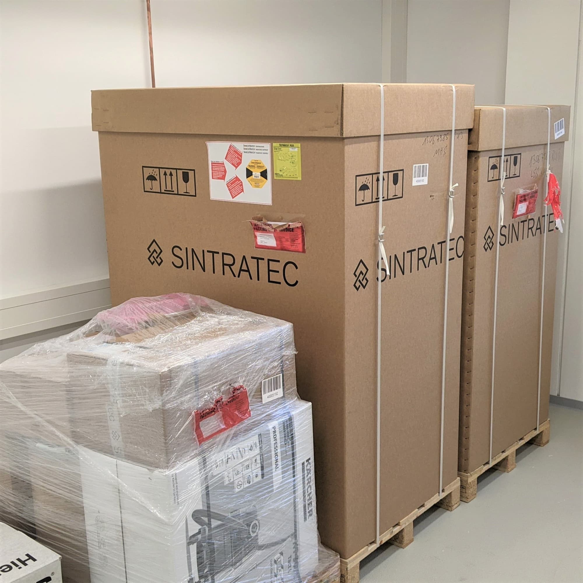 Neue Lieferung: SLS-Drucker! Heute sind unsere neuen Sintratec-SLS-Drucker angekommen. Wir freuen uns schon auf das Auspacken!