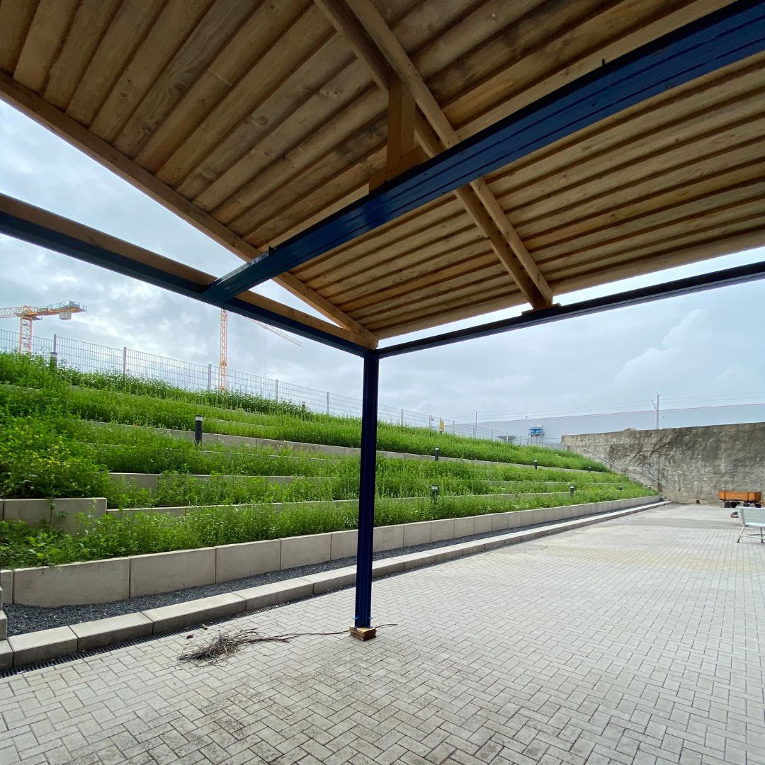 Es wird immer grüner auf unseren Rängen und auch ein Dach als Unterstellmöglichkeit wurde in den letzten Tagen aufgebaut. Es ist noch viel zu tun, aber wir arbeiten mit Hochdruck daran auch den Außenbereich zu verschönern, um eine tolle Arbeits- und Ausgleichsatmosphäre für Euch zu schaffen!