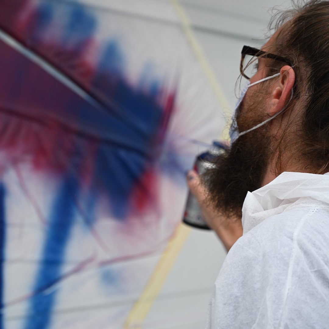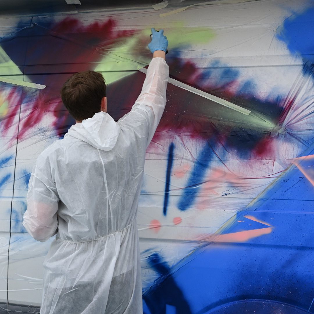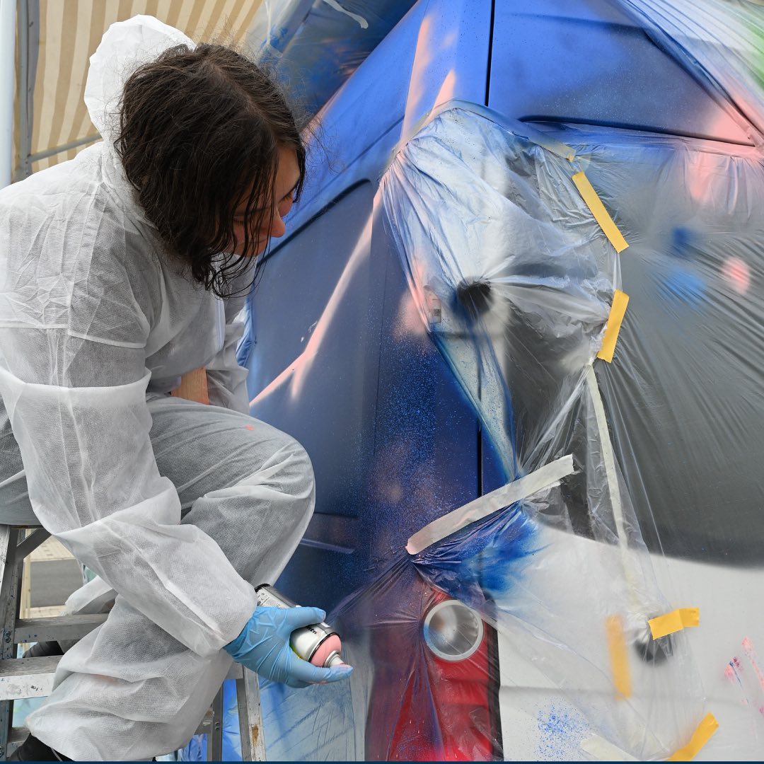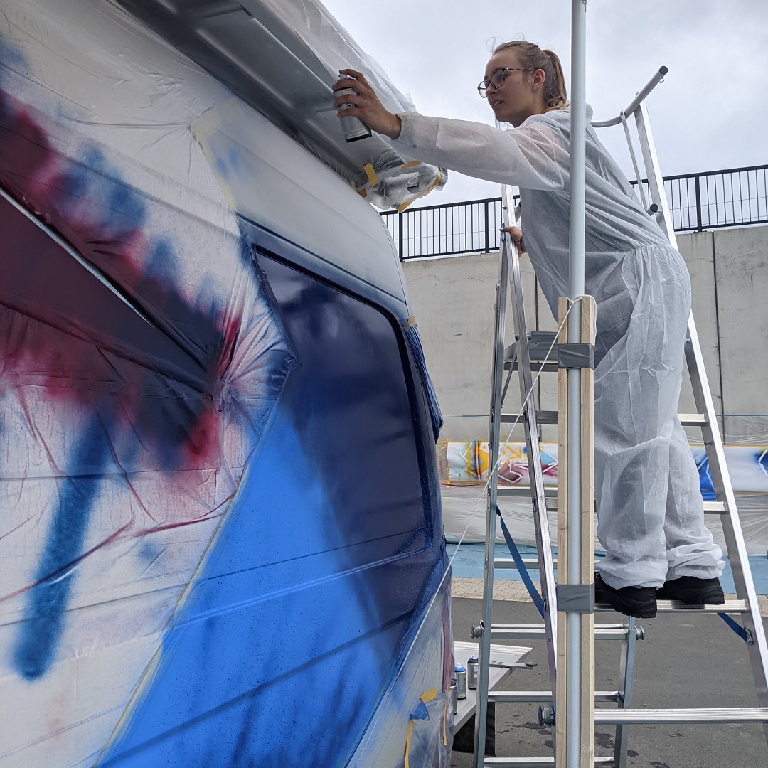 In den letzten Tagen haben wir zusammen mit den freeters unseren Crafter mit bunten Farben und Formen gestaltet.