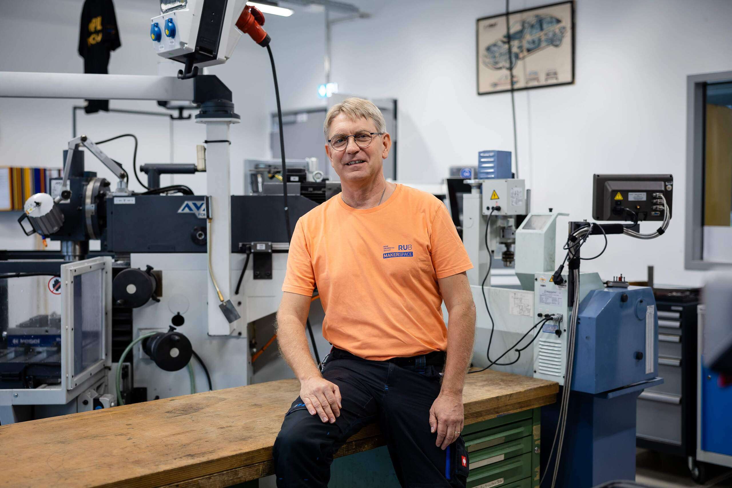 "Hi, mein Name ist Dietmar. Im Makerspace der RUB bin ich Werkstattleiter der Metallbauwerkstatt. Wenn es um das Thema Metall geht bin ich gern Euer Ansprechpartner. Als ehemaliger Opelaner hier auf dem Gelände habe ich die Entwicklung der Industrie hautnah miterlebt und viele Erfahrungen in Technik und später in der Ausbildung sammeln können. Ich freue mich schon darauf Euch bei Euren Projekten zu unterstützen und voranzubringen."